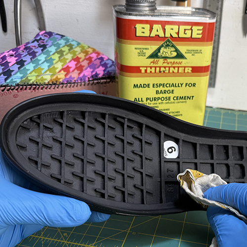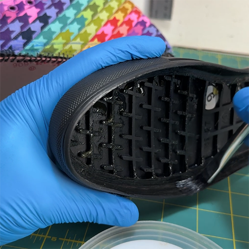 - Clean the outsole with Acetone, cement thinner, or hot water.