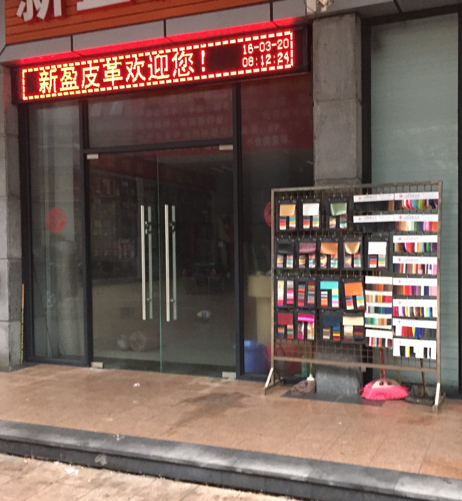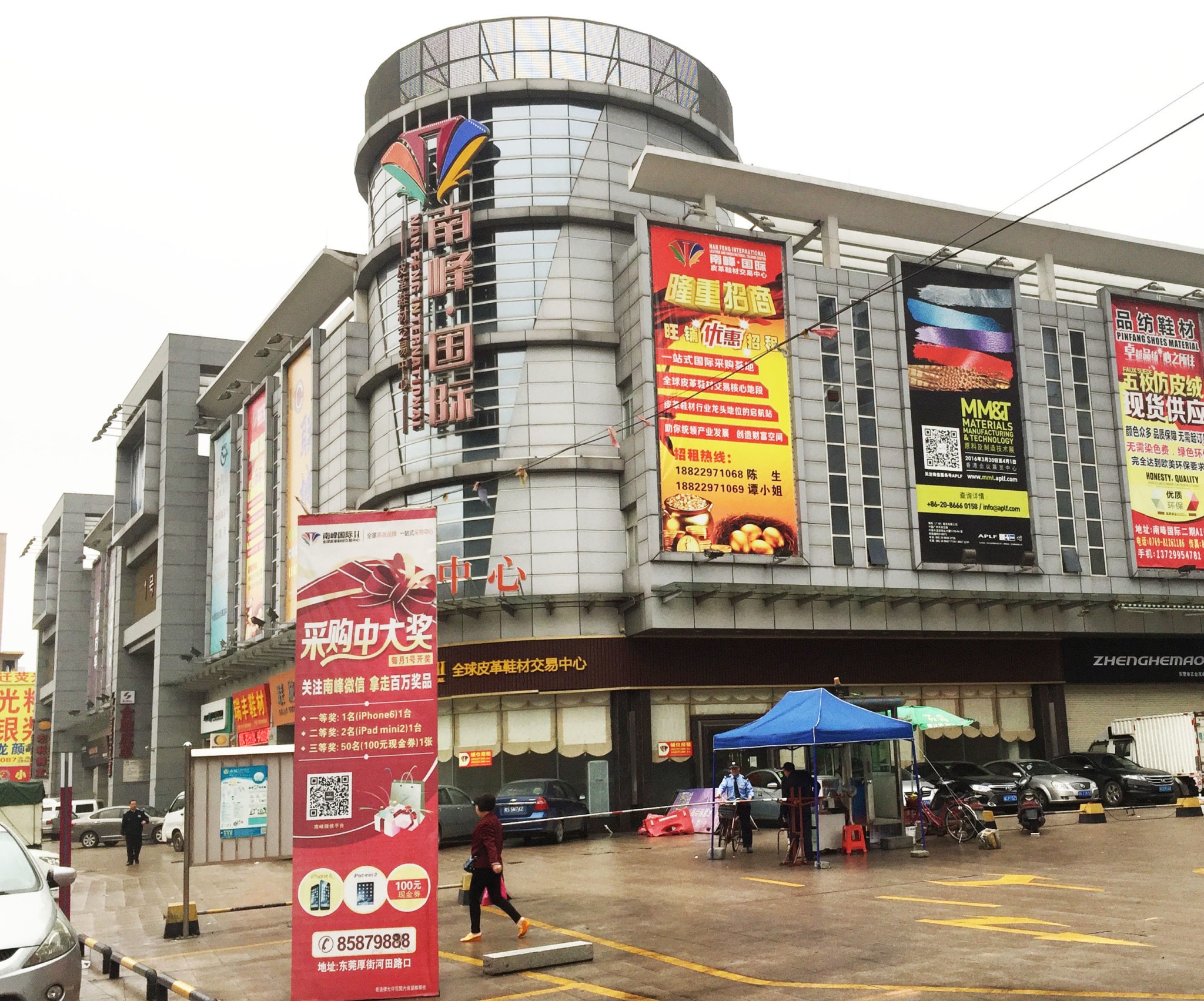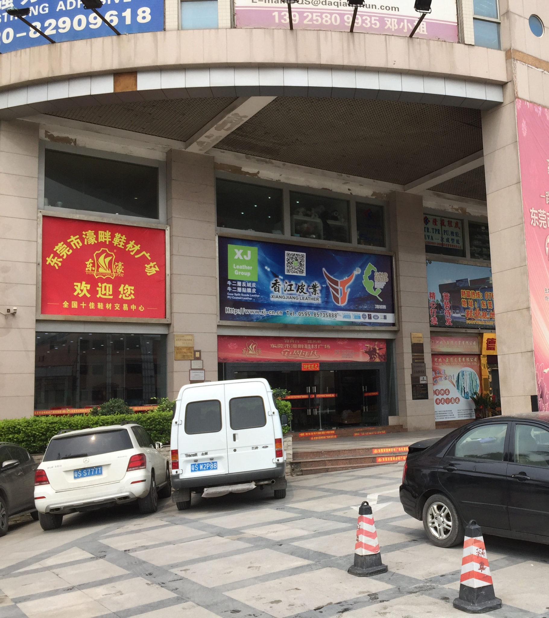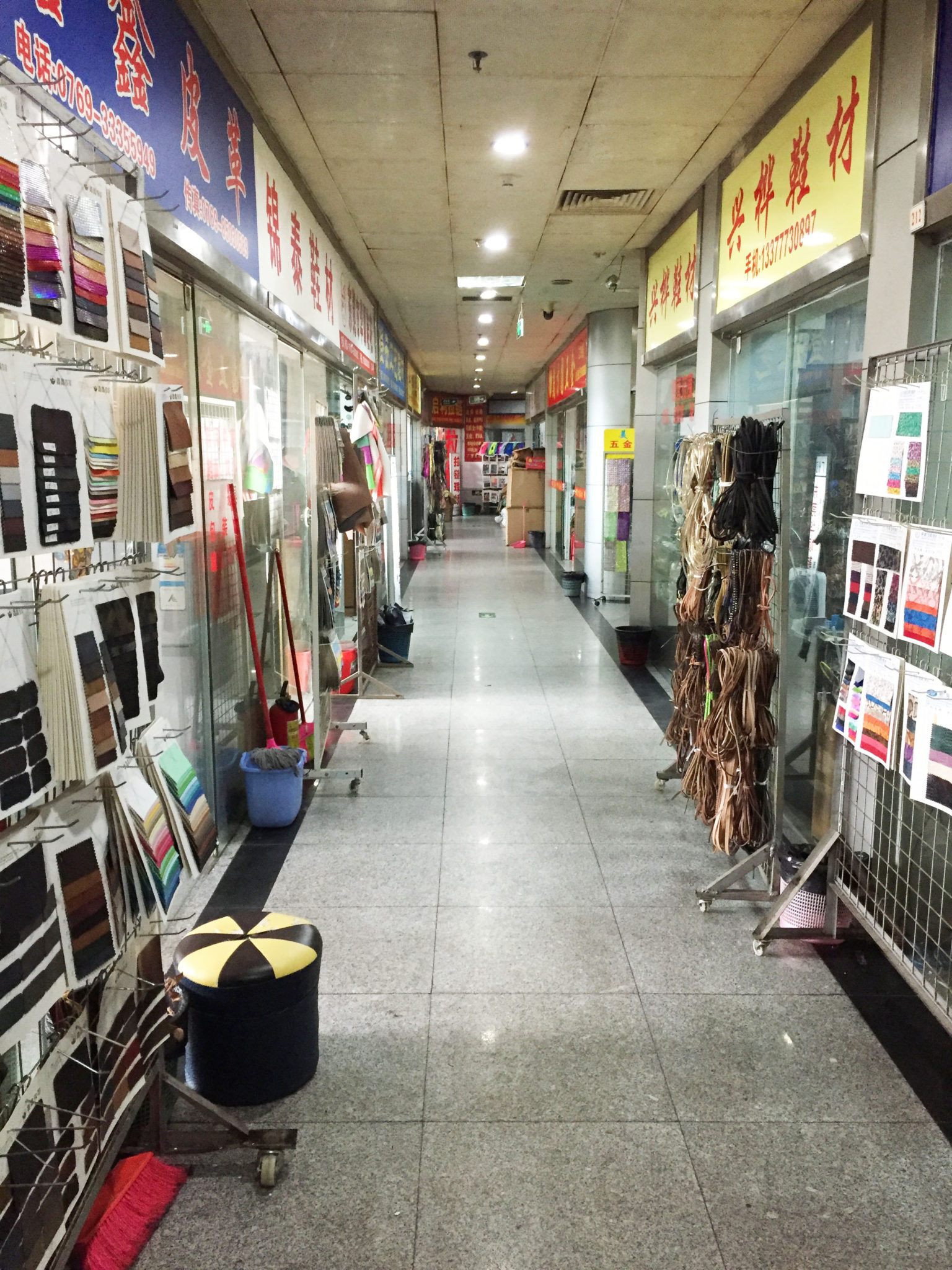 I’m going to describe a busy shoe material market area in the town of Houjie. Houjie is located about 2 hours drive from the Hong Kong airport.  Houjie is an industrial city which is common to find in China. The city has a robust footwear and furniture industry.  Located within a 5 minutes walk from the Sheraton™ Hotel you will find hundreds of shoe material and equipment dealers.