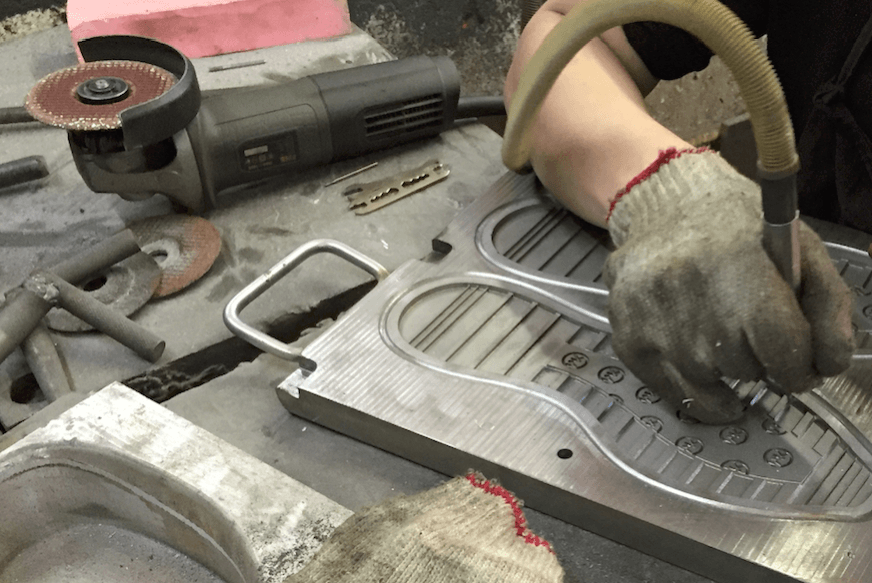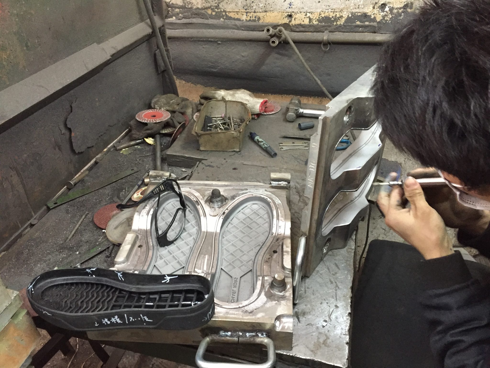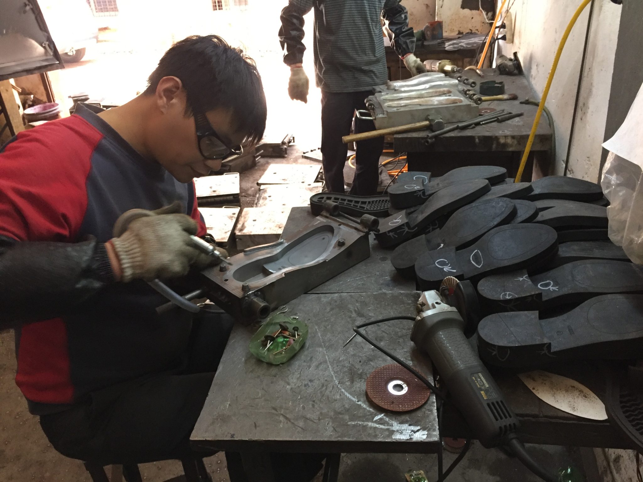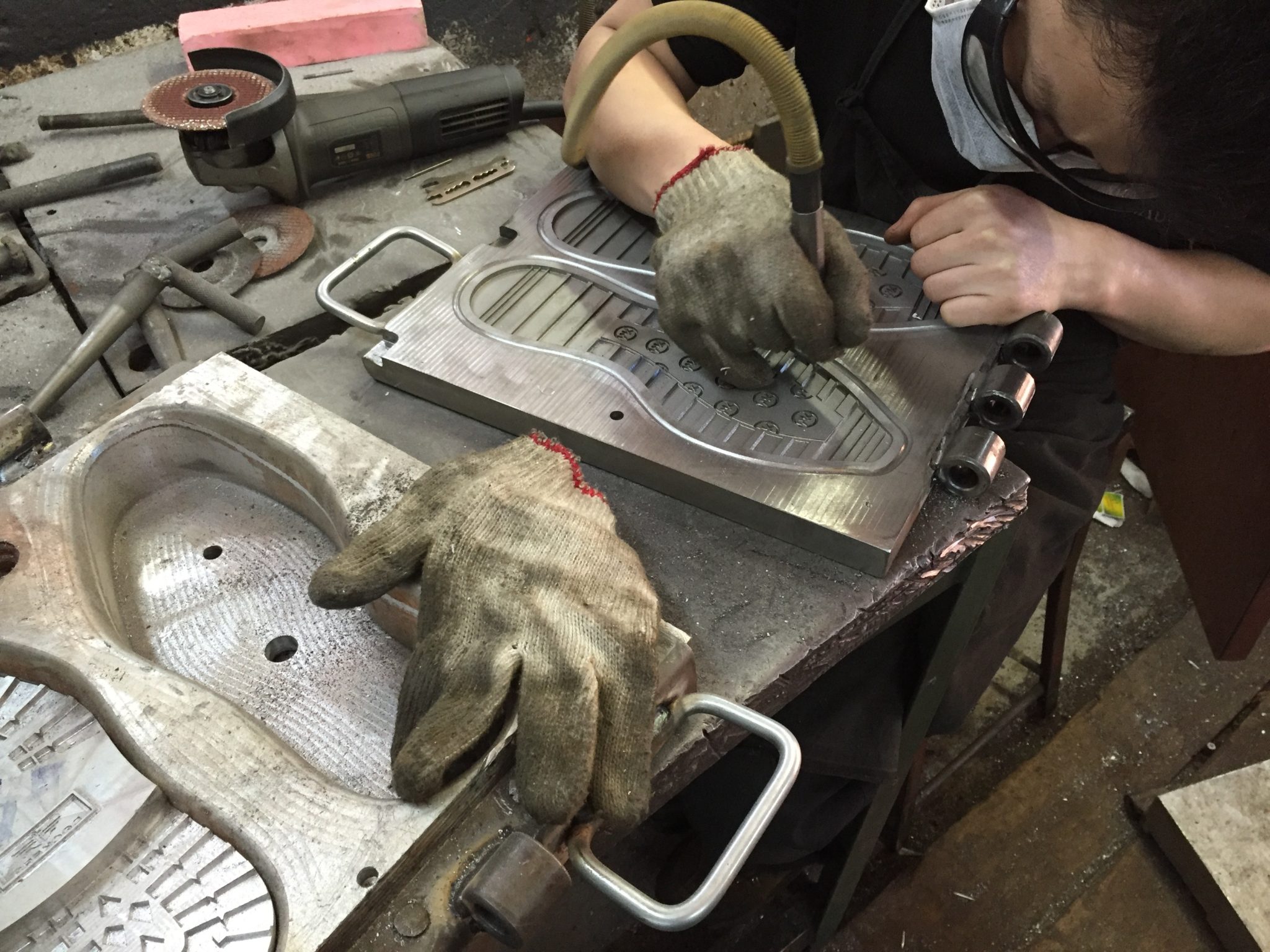 Adjusting the top net with a metal grinder, the outsole and midsoles must fit together tight.