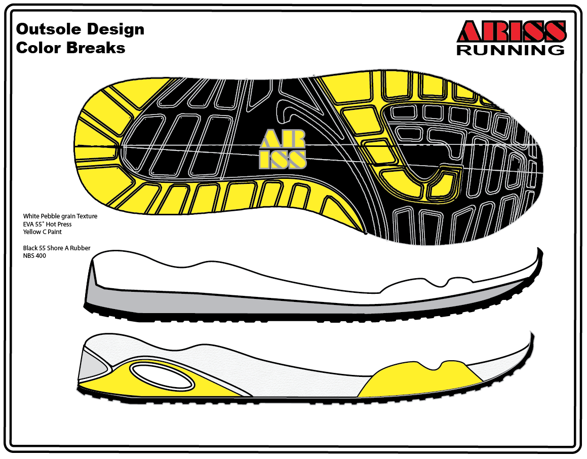 3. A real factory blueprint for an EVA/ rubber running shoe outsole unit in PDF and live vector .ai formats.